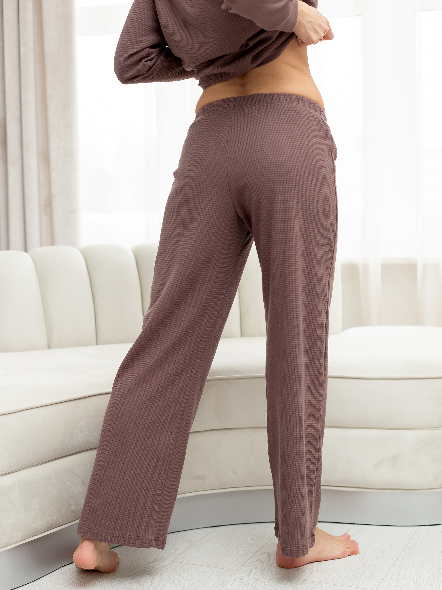 Стильные брюки домашние палаццо женские трикотажные на резинке свободного покроя оверсайз средней посадки без карманов.