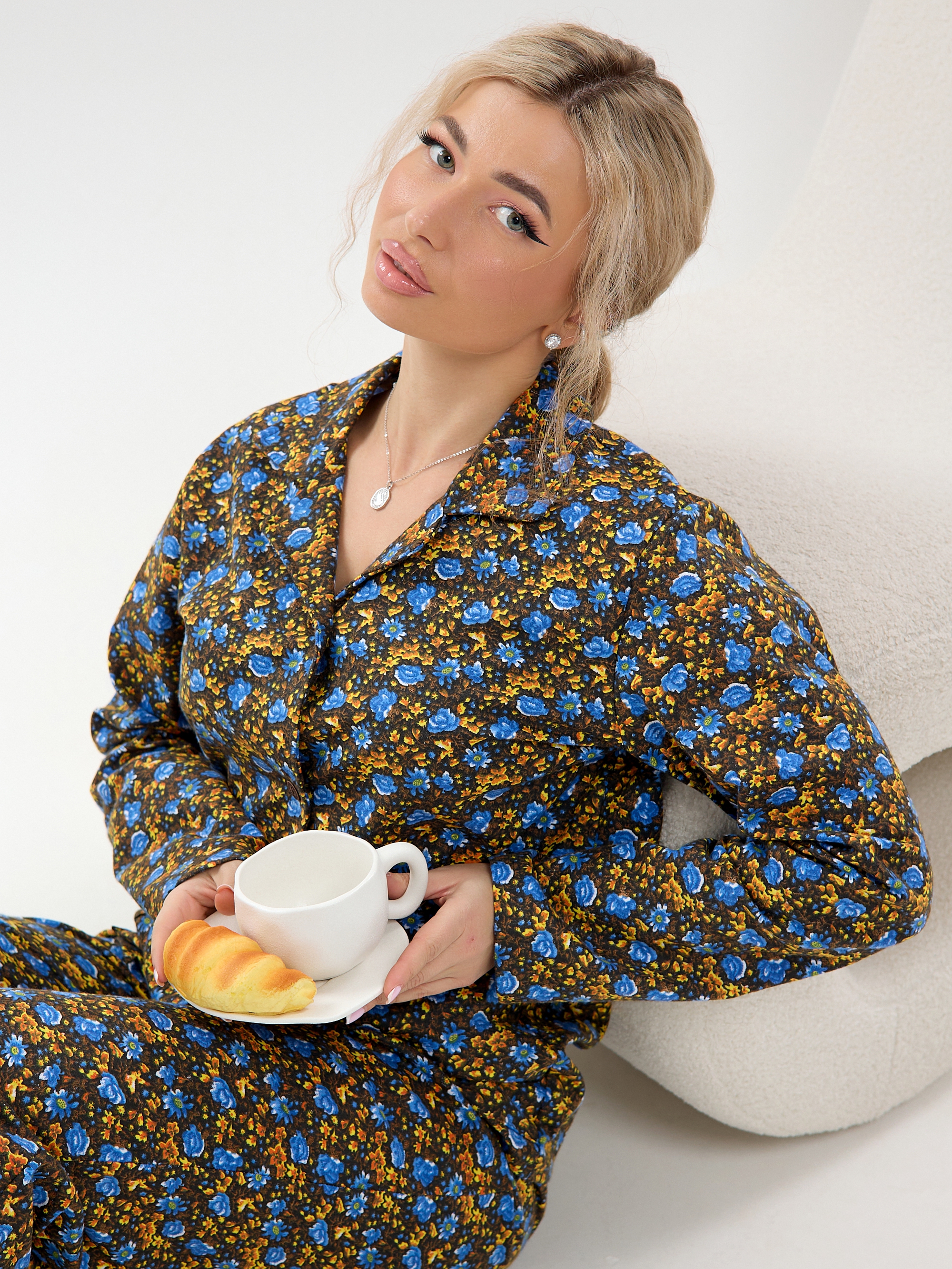 Комплект для сна имеет красивый принт, который подойдет любой женщине, девушке и создаст прекрасное настроение перед сном. Приятные и мягкие штаны и рубашка на пуговицах из фланели сохраняют тепло и позволяют телу дышать. Комплект фланелевый байковый подходит для высокого и невысокого роста благодаря свободному крою и большим размерам, позволяет свободно двигаться и чувствовать себя комфортно в любом положении.